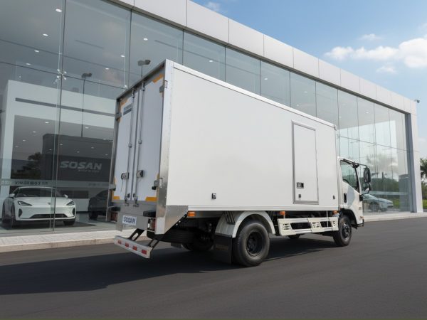 - Thiết kế tiện lợi: Thành bên thùng hàng có bố trí cửa xếp dỡ hàng, giúp việc bốc xếp trong không gian hẹp trở nên linh hoạt hơn.
