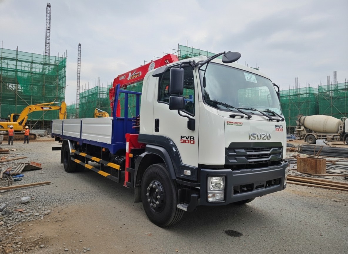 Trong phân khúc xe tải hạng trung gắn cẩu, xe tải Isuzu FVR900 gắn cẩu 5 tấn Unic URV554K được xem là “vua” nhờ sự kết hợp giữa khung gầm F-Series vững chắc và khả năng nâng hạ linh hoạt của cẩu Nhật Bản. Đây là dòng xe chuyên dùng đáp ứng hoàn hảo các nhu cầu vận chuyển vật liệu xây dựng, lắp đặt máy móc và cứu hộ giao thông hiện nay.