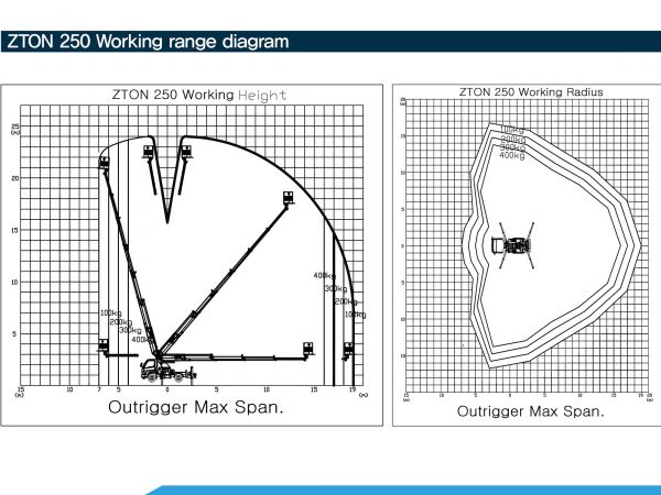 Biểu đồ phạm vi nâng- góc nâng- bán kính làm việc của thang nâng Ztom 300V