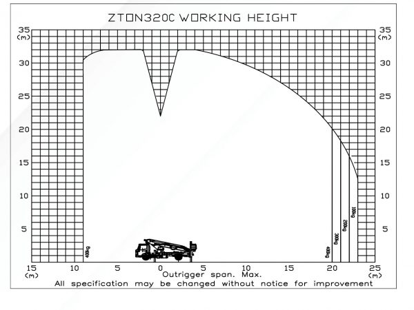 Biểu đồ phạm vi làm việc cẩu thang nâng Ztom 320